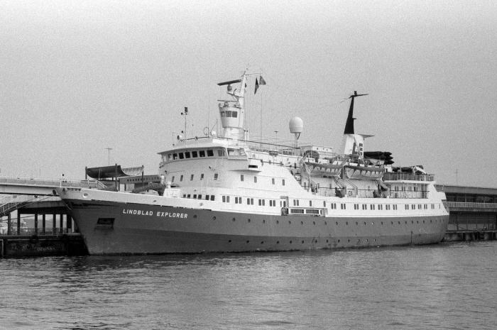 2346G.T./73m/14m/1969年就航 船籍港 NASSAU 〔バハマ〕 United Cruising Co. 1984年/昭和59年,横浜大桟橋に来航した探検クルーズ客船 LINDBLAD EXPLORER です。 当時,世界唯一の観光砕氷船でした。 南極海など氷海クルーズに運航されました。 LINDBLAD EXPLORER は,フィンランドで1969年に建造されました。 オレンジ色の船体が鮮やかでした。 “THE LITTLE RED SHIP” の愛称で親しまれました。 2007年,アルゼンチンの南極に近い海域で氷塊に衝突して沈没したそうです。 |