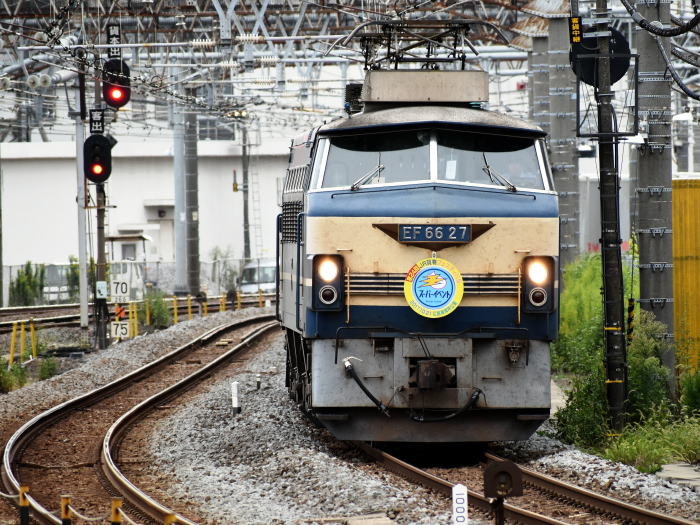 この日のEF66 27には,“スーパーライナー”のヘッドマークに模した