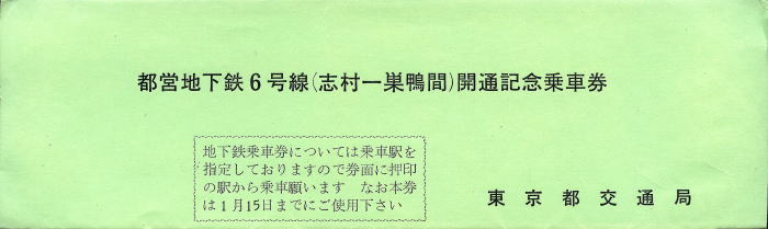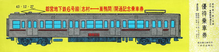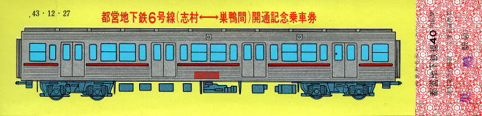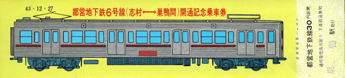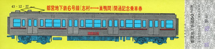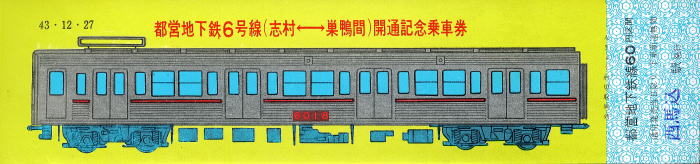 | ◆東京都交通局 地下鉄6号線(志村-巣鴨)開通記念乗車券 1968年/昭和43年12月27日発行 | ||