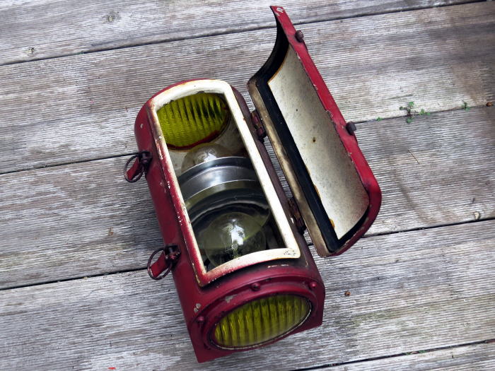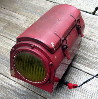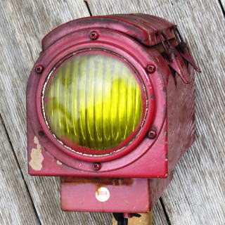 交流電気機関車 EF70に付けられていた電気暖房表示用車側灯です。 車側灯は,交流機関車の車体塗色と同じ赤色に塗装されています。 蒸気機関車が主力のとき,客車の暖房は蒸気暖房でした。 電気機関車・ディーゼル機関車に代わっても, 機関車に搭載した蒸気発生装置(Steam Generator)から蒸気を供給しました。 昭和30年代以降,電気機関車から客車に電気を供給して, 客車に設備した電気ヒータで暖房する電気暖房が採用されました。 機関車と客車の連結作業のとき, 客車に暖房用電気を供給するジャンパー線による感電事故を防止するため, 作業者に通電していないことを黄色灯の点灯により知らせています。 電気暖房表示灯は,電気暖房客車を牽引する機関車に装備されています。 交直流切替駅で,車側灯を点灯した機関車が連結される情景が浮かびます。 |