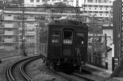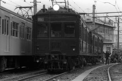 | 国道駅に到着した海芝浦行クモハ12053単行 1986.2 国道 〔鶴見線〕 | ||