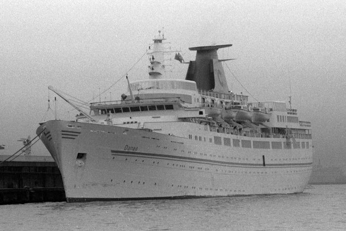 10501G.T./162m/1955年就航 船籍港 PANAMA 〔PANAMA〕 COSTA LINE DANAEは,英国の貨客船“Port Melbourne”を1972年に改修した客船です。 1985年/昭和60年,コスタラインの客船として横浜大桟橋に来港しました。 ファンネルには,コスタラインを示す“C”が記されていました。 2007年,ポルトガル客船“プリンセス・ダナエ”として,横浜大桟橋に24年ぶりに来航しました。 |