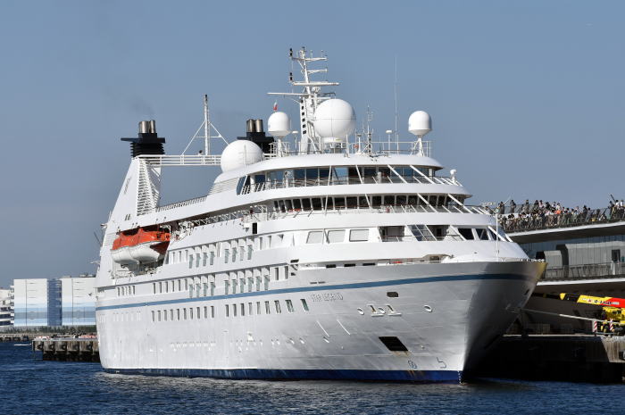 9961G.T./135m/19m/1992年就航 船籍港 NASSAU〔バハマ〕 Windstar Cruises スターレジェンドは,ウインドスター・クルーズが運行する全室スィートのプライベートヨットスタイル客船です。 乗客数212人に対して,乗務員151人がサービスします。 姉妹船2隻(スタープライド,スターブリーズ)とともにヨットスタイル・クルーズを展開しています。 2018年4月に横浜初入港しました。 4月14日に続く,2回目 5月4日の寄港, 北日本・アラスカ太平洋横断クルーズで宮古に向けて出航しました。 |