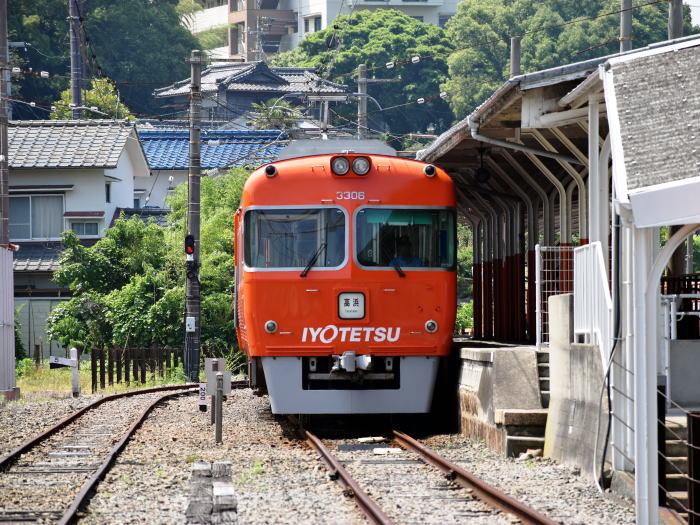 | 高浜駅に到着した3000系・3306号 2018.6.9 高浜〔伊予鉄道 高浜線〕 |