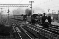 1983年7月23〜24日,東京-大阪間に, EF58 61牽引リバイバル列車“平和”が運転。 雨の東神奈川駅で,上り“平和”を撮影しました。 当時,リバイバルつばめ・はとも運転されました。 “へいわ”は戦後初の特急として東京-大阪に誕生, 翌1950年に“つばめ”に改称されました。 |