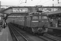 東北本線/南部の主力交流電機ED71は, ED75に追われ,1982年11月22日に運用離脱しました。 末期,旅客列車牽引,福島-白石間の貨物列車牽引, 福島-金谷川間の補機運用などに就いていました。 離脱の44日前の10月9日,福島駅で 貨物列車の牽引・補機運用のED71を撮影しました。 |