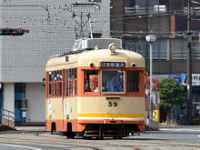 松山の路面電車は元気です。 松山市駅を拠点に,松山城を周る路線と道後温泉を結ぶ路線を 4形式の路面電車38輌と蒸気機関車を模した坊っちゃん列車が運行しています。 主力の路面電車は,50形 21輌です。 50形は,1951〜57年/昭和26〜32年製造の前期型と 軽快なスタイルの1960〜65年/昭和35〜40年製造の後期型に区別されます。 車齢は50年を超えますが,オレンジ一色の新塗色で,市内を走り回っています。 2000形は,1964〜65年/昭和39〜40年製造の元京都市電です。 京都市電廃止により1979年/昭和54年に2002〜2006の5輌の譲渡を受けました。 2000形も車齢50年を超えますが,全車健在です。 2100形は,バリアフリー化を目的に2002年から導入されました。 2002年から2005年まで毎年2輌,2006・7年に各1輌が投入されました。 5000形は,2017年に2輌が投入された超低床LRVです。 今後の増備が計画されています。 懐かしいスタイルの路面電車に加えて, 郊外電車線と2か所で平面交差するなど,市内線は見どころの多い鉄道です。 |