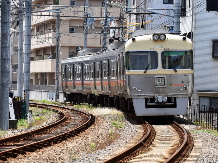 | 古町駅を発車した横河原行普通列車 3000系クハ3501号 2018.6.9 古町〔伊予鉄道 高浜線〕 |
