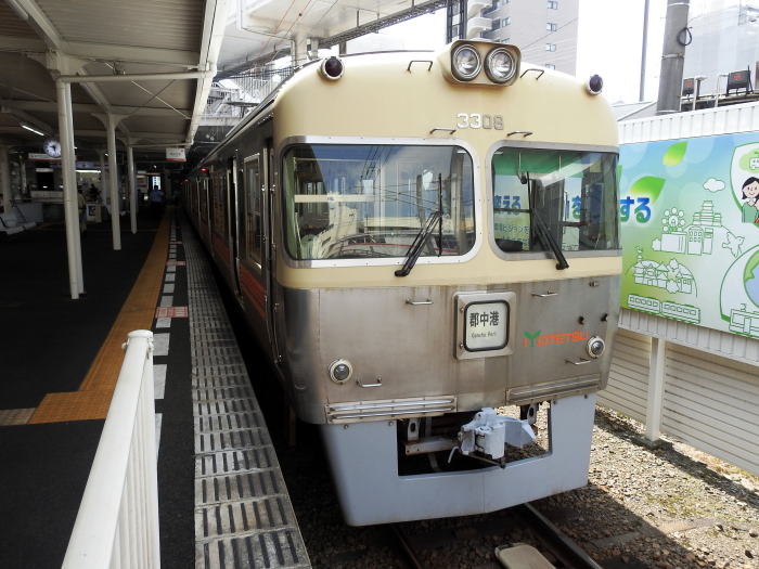 | 松山市駅で発車を待つ郡中港行普通列車 3000系クハ3308号 2018.6.9 高浜〔伊予鉄道 郡中線〕 |