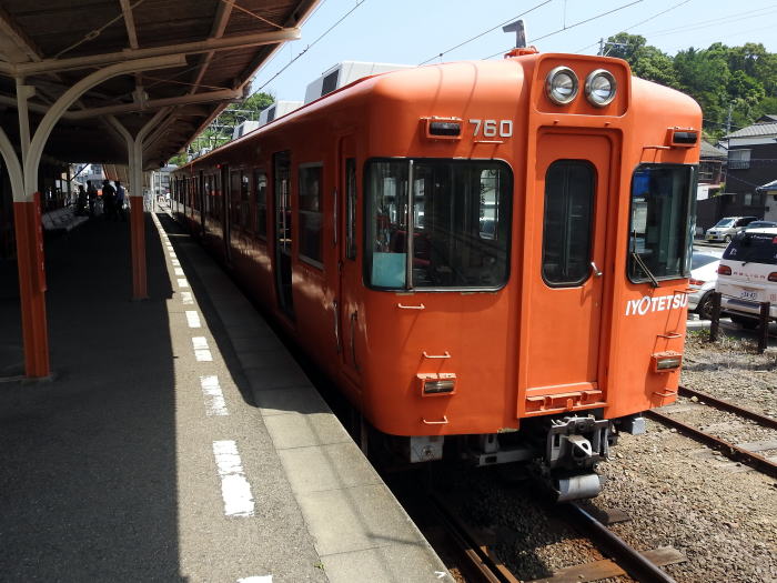 | 高浜駅で発車を待つ横河原行普通列車 700系クハ760号 2018.6.9 高浜〔伊予鉄道 高浜線〕 | ||