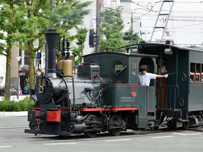 | 松山市内線を走る坊っちゃん列車 2018.6.8 市役所前-県庁前〔伊予鉄道 城南線〕 | ||