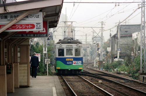 | 松虫駅に発着する127号と128号 1990.11.17 松虫-阿倍野 〔阪堺電軌 上町線〕 | ||