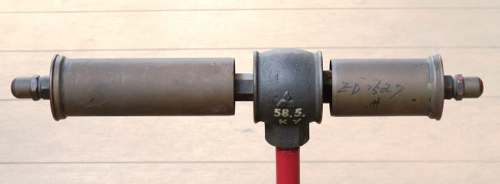 ED75 27号機のホイッスル(警笛)です。 このAW-2形ホイッスルは国鉄/JRの電気・ディーゼル機関車に装備されています。 これは,三菱電機製ですが,日本エアーブレーキ製も多くあります。 単純構造の堅牢なホイッスルAW-2形は,数十年間に亘り使用され続けています。 機関車に共通する二和音の甲高い警笛音は, 現在の警笛音を聞いても,機関車全盛時代の郷愁を感じます。 鉄道車両の警笛として,蒸気機関車は蒸気で吹鳴する汽笛, 電気機関車,ディーゼル機関車は圧縮空気で吹鳴するホイッスル, 電車,気動車はラッパ型のタイフォン,あるいは電子笛を装備しています。 寒冷地や勾配線区の電車,気動車は,タイフォンとホイッスルを併設しています。 |