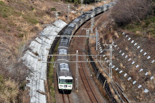 185系 185系 踊り子106 伊豆急下田1212発 東京1449着 14時23分撮影 2019.2.7 東戸塚-保土ヶ谷 〔JR東日本 東海道本線〕 |