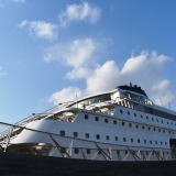 英国のクルーズ&マリタイム・ボヤージュが運航する“コロンブス”が,横浜に初来航しました。 “コロンバス”は,ロンドンを出港,120日間の世界一周クルーズの途中, ラバウルから横浜に寄港しました。 |