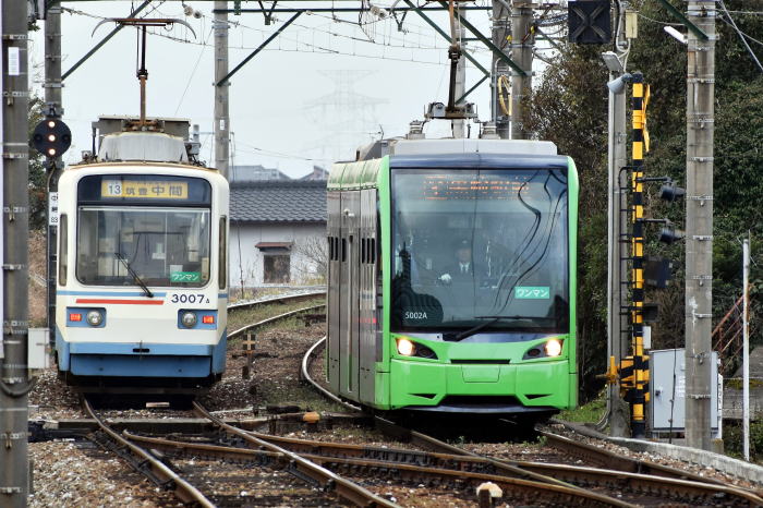 | 3000形(3007),5000形(5002) 2019.3.1 筑豊中間〔筑豊電鉄〕 |