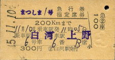| まつしま1号・白川→上野・300円 昭和45年11月10日・白河駅発行 |
