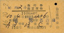 紀州2号・尾鷲→名古屋・300円 昭和46年10月2日・(中)金山駅発行 |