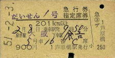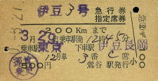 伊豆3号・東京→伊豆長岡・500円 昭和50年3月27日・鶯谷駅発行 |