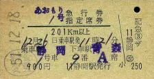 | あおもり1号・静岡→青森・900円 昭和51年12月18日・静岡駅発行 |