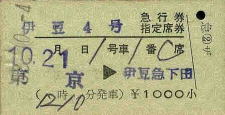 伊豆4号・東京→伊豆急下田・1000円 昭和52年10月4日・渋谷駅発行 |