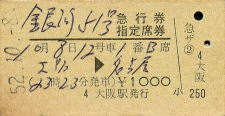 銀河51号・大阪→名古屋・1000円 昭和52年10月8日・大阪駅発行 |