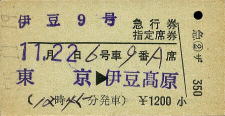 | 伊豆9号・東京→伊豆高原・1200円 昭和55年11月19日・(交)渋谷発行 |