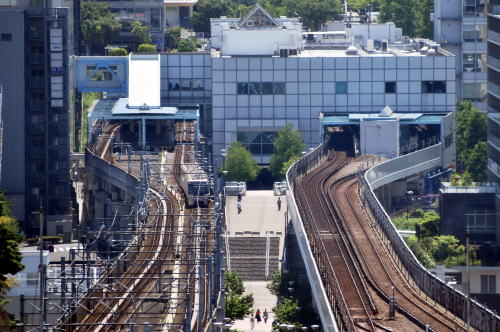 | センター北/南 上空 ◆横浜市営地下鉄・センター北駅前のプレミアヨコハマから センター北とセンター南間を並走する ブルーラインとグリーンラインの線路を俯瞰できます。 グリーンラインの架線集電方式に対して, ブルーラインは第3軌条集電方式のため すっきりとした列車の走行写真を撮影できました。 |