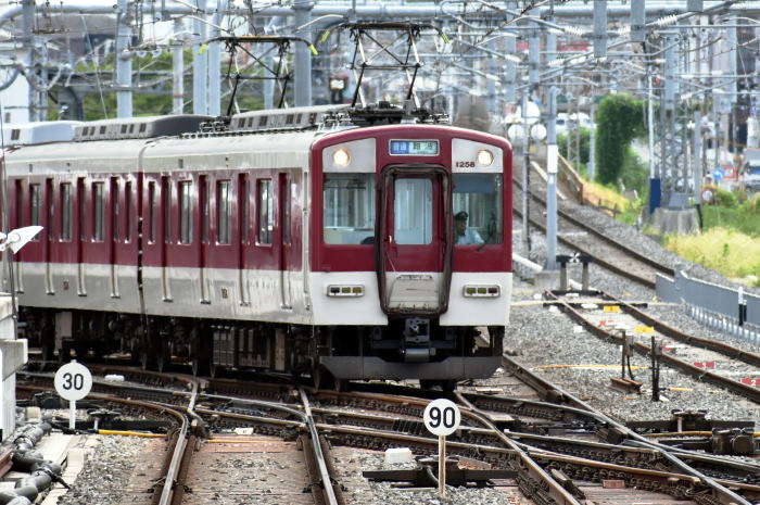 | 東花園を通過する難波行急行・1252系(1262) 2019.8.12 東花園 〔近畿日本鉄道 奈良線〕 | ||
