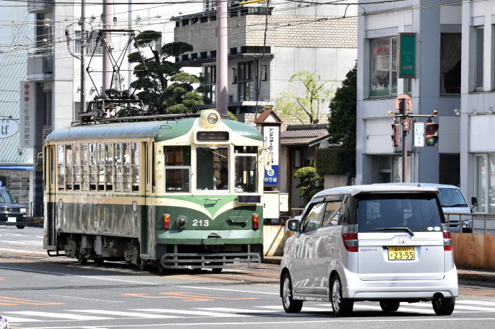 200形(213) 2019.4.6 デンテツターミナルビル前 〔とさでん交通 後免線〕