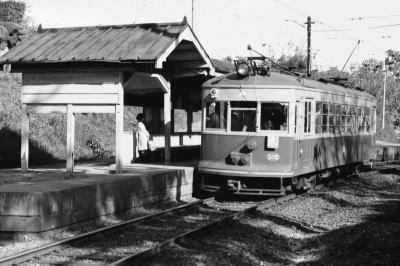 ひなびた駅に,ホイール型トロリーポールの電車が似合いました。