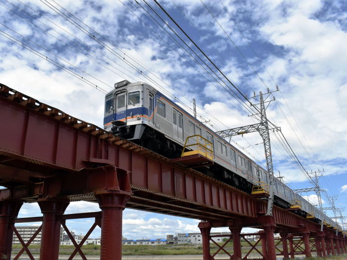 南海電鉄・高野線の大和川橋梁を渡る古豪オールステンレス車6300系を撮影しました。