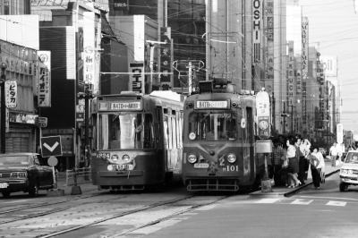 | A830形・A837+A838,250形・251 1974.8 西四丁目〔札幌市交通局 一条・山鼻軌道線〕 | ||