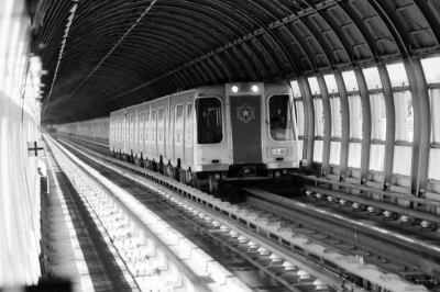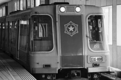 札幌オリンピック開催の1か月半前の1971年/昭和46年12月16日に, 札幌市営地下鉄・南北線(北24条-真駒内)12.1kmが開業しました。 中央のレールをまたいでゴムタイヤで走行する案内軌条式鉄道(ゴムタイヤ式地下鉄)です。 当時は,2輌編成の1000形と4輌編成の2000形が運用されていました。 先頭部の貫通扉に大きな札幌市マークが付けられた独特のデザインでした。 真駒内-南平岸間の高架線部は,防雪のためアルミ合金製シェルタの中を走行します。 真駒内駅で,真新しい1000形・2000形を撮影しました。 |