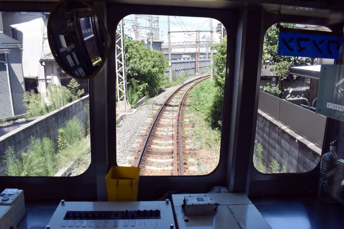 | 貝塚駅を出発した水間観音行普通 1007車内から 2019.9.3 貝塚-貝塚市役所前〔水間鉄道 水間線〕 |