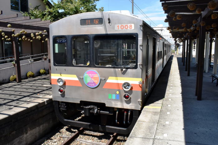 | 出発を待つ貝塚行普通 1000形・1007-1008 2019.9.3 水間観音〔水間鉄道 水間線〕 | ||
