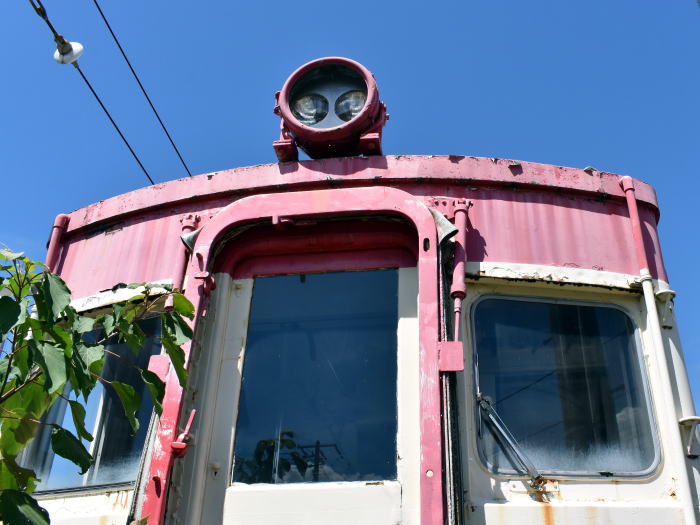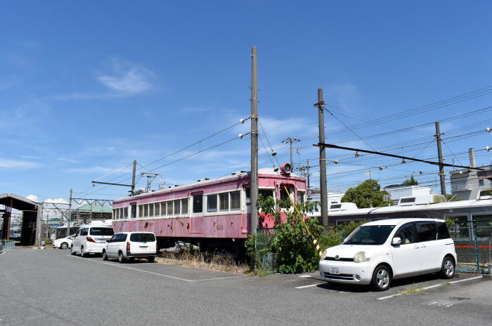 | 駅舎側の駐車場に静態保存の501形・553号 2019.9.3 水間観音〔水間鉄道 水間線〕 |