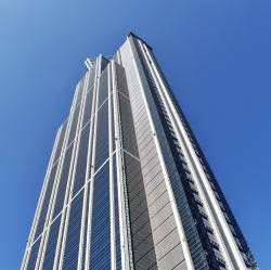 | 大阪 咲洲上空 ◆大阪・住之江区南港北(咲洲)にある 大阪府咲洲庁舎 “さきしまコスモタワー”展望台から 大阪メトロ・南港ポートタウン線を走る列車を撮影しました。 さきしまコスモタワーは,地上55階建ての超高層ビルです。 展望台は,地上252m,55階にあり, 大阪市内を広域に眺められます。 南港ポートタウン線は, 自動案内軌条式のニュートラムが運行しています。 2016年登場の200系電車が4輌編成で頻繁に走行しています。 |
