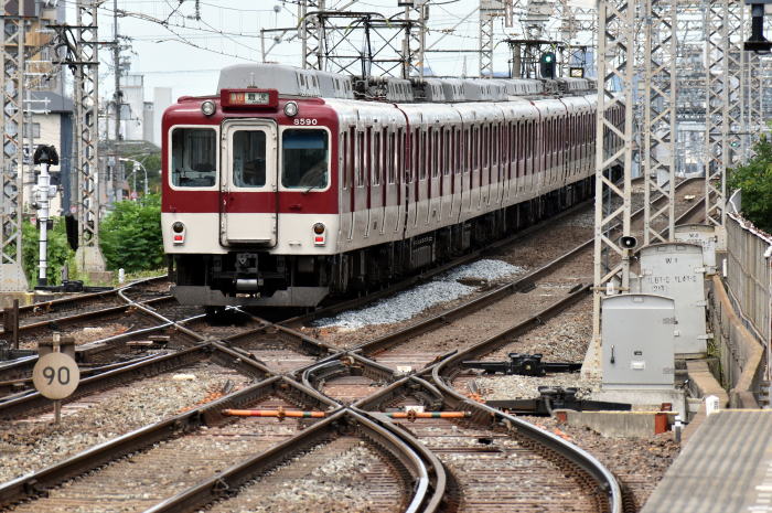 | 難波行急行・8000系(8590) 2019.8.12 瓢箪山 〔近畿日本鉄道 奈良線〕 | ||