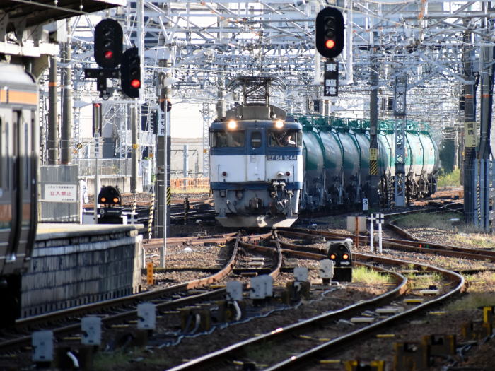 東海道本線・名古屋駅のホームからEF64重連が牽引する石油貨物列車を撮影しました。