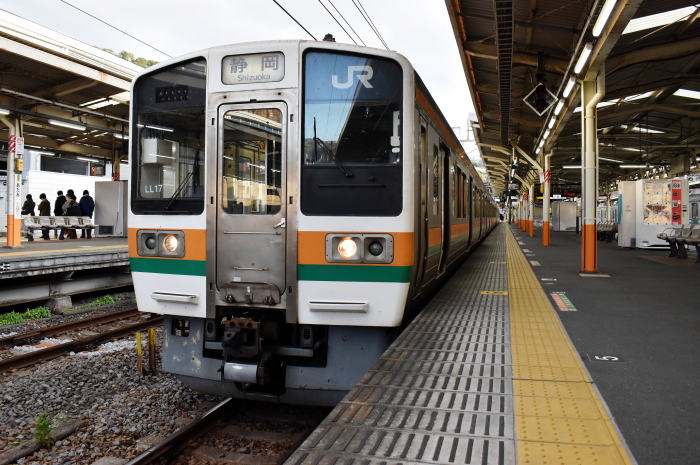 | 熱海駅で出発を待つ熱海始発/静岡行普通列車・211系 | ||