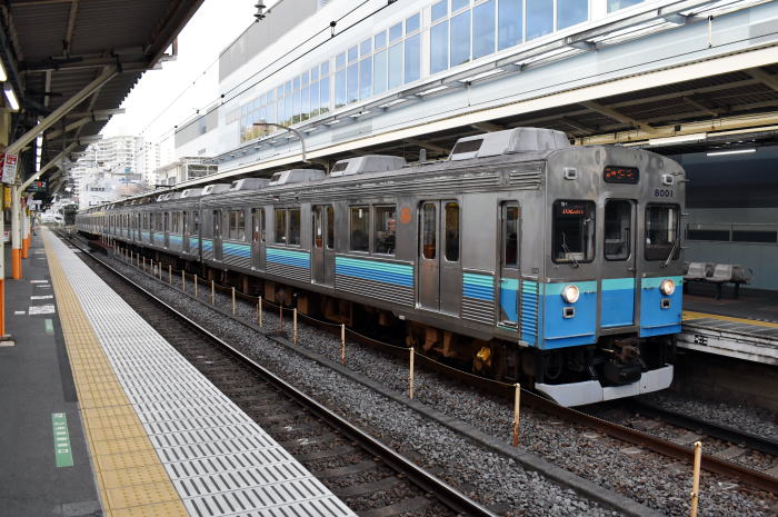 | 熱海駅・伊東線ホームで出発を待つ伊東行普通列車・伊豆急行8000系 |
