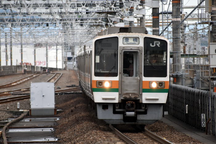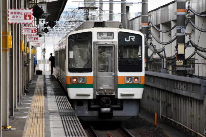 | 静岡駅に入選する静岡始発/豊橋行普通列車・211系 |