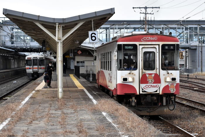 | 大垣駅・樽見鉄道線ホームから発車するハイモ295-617(ハイモ295-610形) |