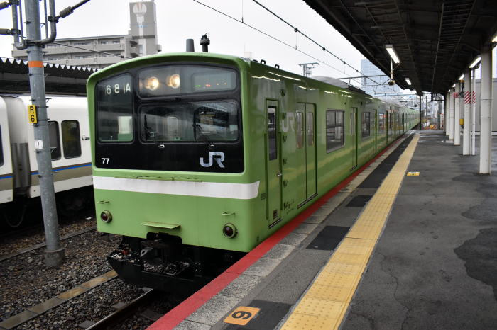 | 八尾駅に到着する奈良行普通列車・201系 | ||