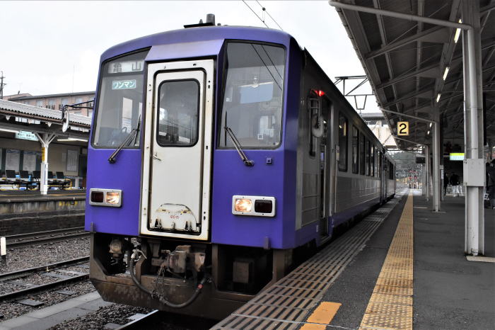 | 柘植駅に停車する亀山行普通列車・キハ120形(キハ120-15) |