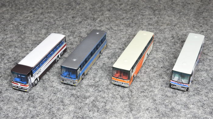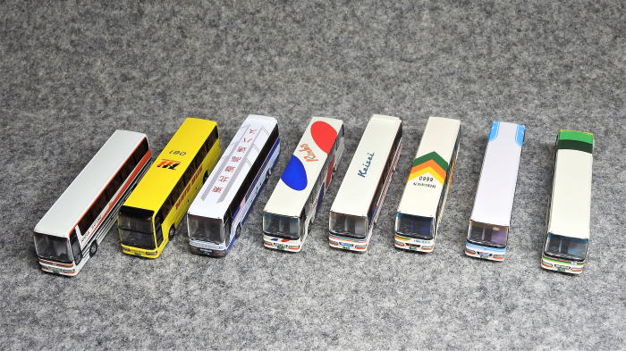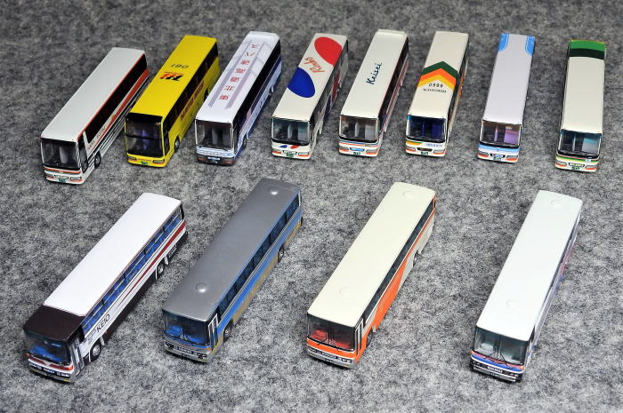 路線バスは,スタイル・塗色から活躍した時期・地域を特定できるため, THE バス・コレクションの収集により, 各地域を走った路線バスの歴史を感じることもできます。 THE バス・コレクション第17弾(2011.9発売)を紹介します。 いすゞガーラⅠⅡⅢと日野ブルーリボンRU638AAが, 事業者の塗色でモデル化されています。 日野ブルーリボンRU638AAは,昭和57年/1982年に登場した スケルトンボディの観光系リアエンジンバスシリーズです。 モデルは高出力EF750型エンジン搭載のフルデッカⅠです。 いすゞガーラⅠⅡⅢは,平成8年/1996年に, 観光系リアエンジンバスとして登場し,全国で幅広く導入されました。 ガーラⅠはハイデッカー,ガーラⅡはスーパーハイデッカー, ガーラⅢはグレイスハイデッカー仕様で製造されました。 日野プルーリボンRU638AA ⇒ 岩手急行バス,東京空港交通,京王帝都電鉄,伊予鉄道 いすゞガーラⅠⅡⅢ ⇒ 国際興業バス,京成バス,はとバス,川崎鶴見臨港バス,三重交通 奈良交通,京都市交通局,広島電鉄 シークレットは,日野プルーリボンRU638AA 奈良交通 |