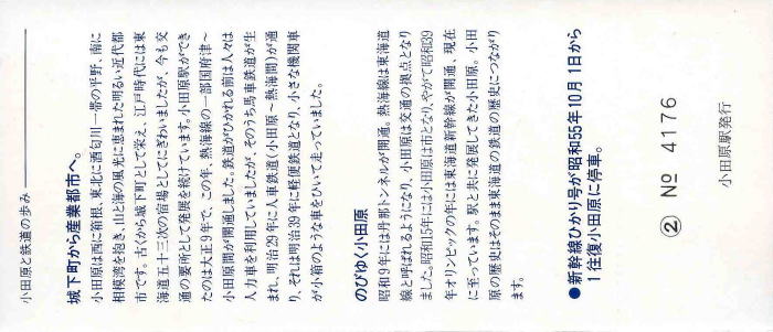 | ◆小田原駅開業60周年記念入場券 1980年/昭和55年10月21日 小田原駅発行 | ||