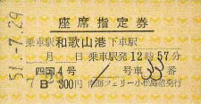 | 和歌山港→・四国4号・300円 昭和51年7月29日・小松島港発行 |