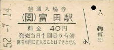 | 富田・40円 昭和52年7月14日・富田駅発行 |